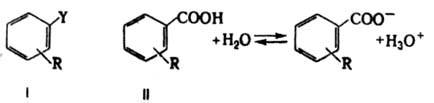 Реакц. серия диссоциации бензойных к-т в воде при 25 °С выбрана как стандартная, при этом величины lg(K/K0)=s представляют константы заместителей R. Ур-ние (4) известно как ур-ние Гаммета и обычно записывается в форме: