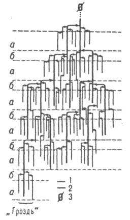 Рис. Модель структуры амилопектина: 1 S-цепь; 2 L-цепь; 3 восстанавливающий остаток; а - компактная область с упорядоченной кристаллич. структурой; б - область, не обладающая кристалличностью. По хим. св-вам крахмал-типичный представитель полисахаридов. В обычных условиях крахмал образует по гидроксильным группам простые или сложные эфиры и окисляется солями йодной к-ты. Действие нек-рых реагентов, напр. формальдегида, фосфорной к-ты и эпихлоргидрина, приводит к производным крахмала, содержащим поперечные сшивки. С иодом и полярными орг. в-вами крахмал образует соед. включения (клатраты). Такие соед. с иодом окрашены в характерные цвета-синий (lмакс 620-680 нм) для амилозы и красный (lмaкс 520-555 нм) для амилопектина. Молекулы амилозы в этих комплексах образуют вокруг молекулы иода спираль, каждый виток к-рой содержит 6 остатков глюкозы. При термич. обработке сухого крахмала (т-ра ок. 300 °С), g-облучении, кислотном или ферментативном гидролизе получают продукты его частичного расщепления - разл. декстрины. Известны многочисл. ферменты (гл. обр. амилазы), катализирующие гидролиз крахмала. Избират. гидролиз а-1:6-связей в крахмале может быть осуществлен под действием изоамилазы и пуллуланазы. При действии трансглюкозилаз нек-рых бактерий крахмал превращ. в циклич. олигосахариды -циклоамилозы (циклодекстрины). Количественно крахмал и его компоненты определяют гравиметрически (осаждение иодом), амлерометрич. и потенциометрич. титрованием, спектрофотометрически (комплексы с иодом), а также с помощью кислотного и ферментативного гидролиза. В последних случаях образующуюся глюкозу определяют хим. или ферментативными методами. Биосинтез крахмала в растениях осуществляется глюкозилтрансферазами, переносящими остатки глюкозы от молекул нуклеозиддифосфаттлюкозы на растущие цепи с образованием a-1:4-связей, и ветвящим ферментом, перестраивающим линейные цели в разветвленные. Крахмал, накапливающийся в листьях, быстро превращ. в сахарозу, к-рая переходит из листьев в семена, клубни и луковицы, где сахароза снова превращ. в крахмал, откладывающийся на длит. хранение. Расщепление крахмала в растениях осуществляется под действием фосфорилаз (фосфоролиз крахмала) и гидролитич. ферментов. Потребности человека в углеводах покрываются гл. обр. крахмалом, содержащимся в растит. пище - хлебе, картофеле, крупах и т.п. В пром. масштабе крахмал получают гл. обр. из картофеля и кукурузы, в меньшей степени - из риса, пшеницы, батата, саговой пальмы, сорго и др. растений. Из измельченного сырья после вымывания крахмала водой, отделения отходов и осаждения крахмала из промывной жидкости (крахмального молока) на центрифуге получают сырой крахмал с влажностью до 36%; после очистки от белков, липидов и др. в-в его обезвоживают и сушат до влажности 20% (чистый крахмал). Крахмал применяют в пищ. пром-сти в качестве загустителей и желирующих ср-в; в биотехнологии - для произ-ва патоки, разл. декстринов (мальтина, цихлоамилозы) и глюкозы; в бродильной пром-сти - в качестве сырья для произ-ва этилового и бутилового спиртов, ацетона, глюконовой, лимонной и молочной к-т, глицерина и др. (см. Брожение). Крахмал применяют также в качестве клеев, в микробиол. средах при произ-ве ферментов, антибиотиков, витаминов и др. биопрепаратов, используют для шлихтования тканей и бумаги, изготовления амилоз