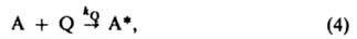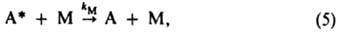 а релаксацию энергии возбуждения - как гибель возбужденных частиц А* при столкновении с условными частицами М:
