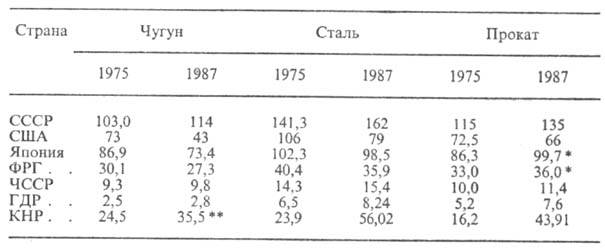* Данные за 1985. ** Данные за 1982.