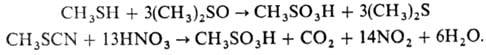 Метансульфокислоту получают электрохим. окислением диметилдисульфи-да CH3SSCH3 на Pt-аноде, окислением метантиола или диметилдисульфида (окислители-HNO3, KMnO4, ДМСО, К2Сr2О7 и др.) либо окислением метилтиоцианата HNO3: