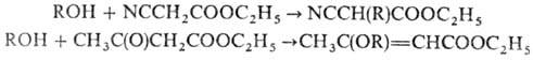 Ациклич. имиды дают продукты N- и О-алкилирования. Соед. с активир. группами СН2 вступают в Мицунобу реакцию с образованием продуктов С- или О-алкилирования, напр.: