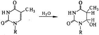 Возбужденная двойная связь способна также присоединять нуклеофилы с образованием, напр., нестойкого гидрата тимина: