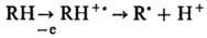 Судьба образовавшихся радикалов R., вероятно, схожа с судьбой радикалов, возникающих при непрямом действии радиации.