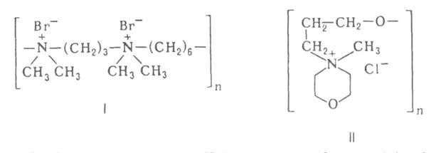 1) Антагонисты гепарина, к-рые устраняют антикоагулянтное действие последнего. Практич. применение нашли препараты протамина, нек-рые синтетич. полимеры, напр. полибрен (ф-ла I), убиквин (II), и основные красители (азур А, толуидиновый синий и др.). Эти в-ва образуют с гепари-ном малодиссоциирующие соединения.