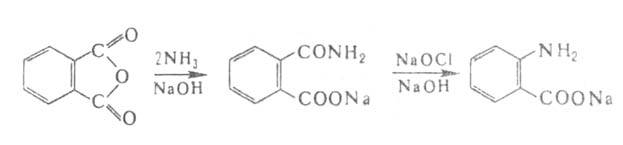 2) действием на щелочной р-р фталимида NaOCl или NaOBr. К-ту выделяют разб. НС1 (40-50оС); выход 84%. Процесс м. б. осуществлен периодич. или непрерывным способом.
