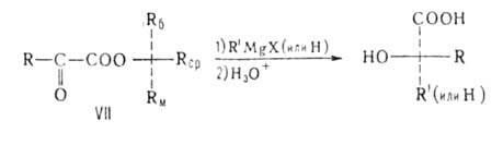 кетокислот, с преимущественной конфигурацией хирального центра, образующегося при диастереоселективных р-циях указанных эфиров (VII) с металлоорг. соед. или при восстановлении :