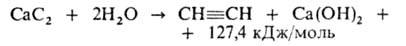 1. Разложение карбида кальция водой: