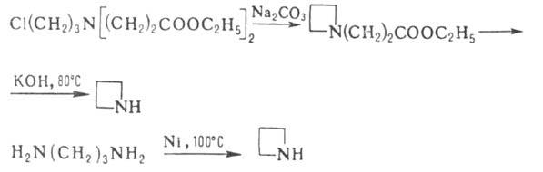 Азетидин может быть получен циклизацией производных