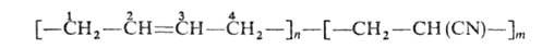БУТАДИЕН-НИТРИЛЬНЫЕ КАУЧУКИ (бутадиен-акрилонитрильные каучуки, дивинил-нитрильные каучуки, нитрильные каучуки, БНК, СКН, бреон, бутакрил, бутапрен, крайнак, NBR, нипол N, пербунан N, тербан, хайкар, хемигум, тербан), сополимеры бутадиена с акрилонитрилом общей ф-лы