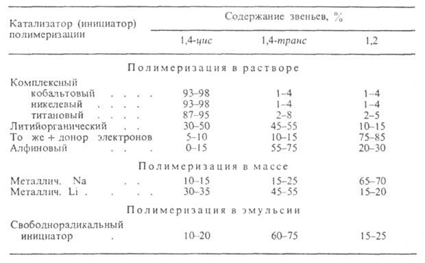 Табл. 1. - СТРУКТУРА МАКРОМОЛЕКУЛ БУТАДИЕНОВЫХ КАУЧУКОВ