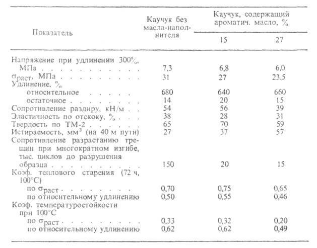 Эмульсионные бутадиен-стирольные каучуки содержат до 8-9% некаучуковых в-в, гл. обр. орг. кислот. Кол-во примесей в каучуках, синтезированных в р-ре, намного меньше. На основе низкотемпературных сополимеров получают масло-, саже- и сажемаслонаполненные каучуки. Наполнители вводят в латекс (после обрыва полимеризации и отгонки непрореагировавших мономеров) с целью облегчения послед. переработки каучука и улучшения технол. характеристик резиновых смесей (см. также Наполненные каучуки).
