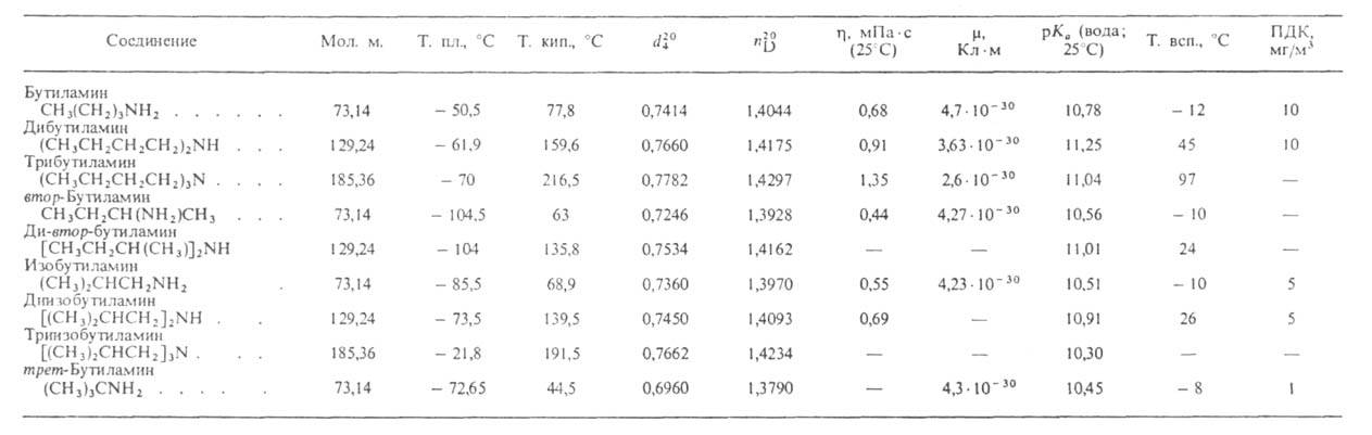 Препаративно н-бутиламин, изо-бутиламин, втор-бутиламин получают взаимод. бутилгалогенидов с NH3, первичными или вторичными аминами. Последовательно образуются моно-, ди- и трибутиламины, а также соли четвертичных аммониевых соединений [(С4Н9)4