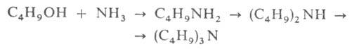 С увеличением молярного соотношения NH3: спирт выход первичных бутиламинов возрастает. Вместо спиртов можно использовать альдегиды или кетоны; в этих случаях р-ция сильно экзотермична.