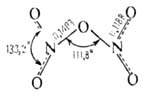Молекула газообразного оксида азота (V) N2O5 (пентаоксид диазота) имеет неплоскую структуру (длины связей в нм):