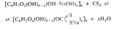Из-за токсичности и взрывоопасности CS2 Процесс осуществляют в герметичных аппаратах (ксантогенаторах) емкостью ок. 30 м3 при разрежении и в среде N2. Продолжительность р-ции 60-90 мин, ее начальная т-ра 22-26°С, конечная - 28-35 °С.