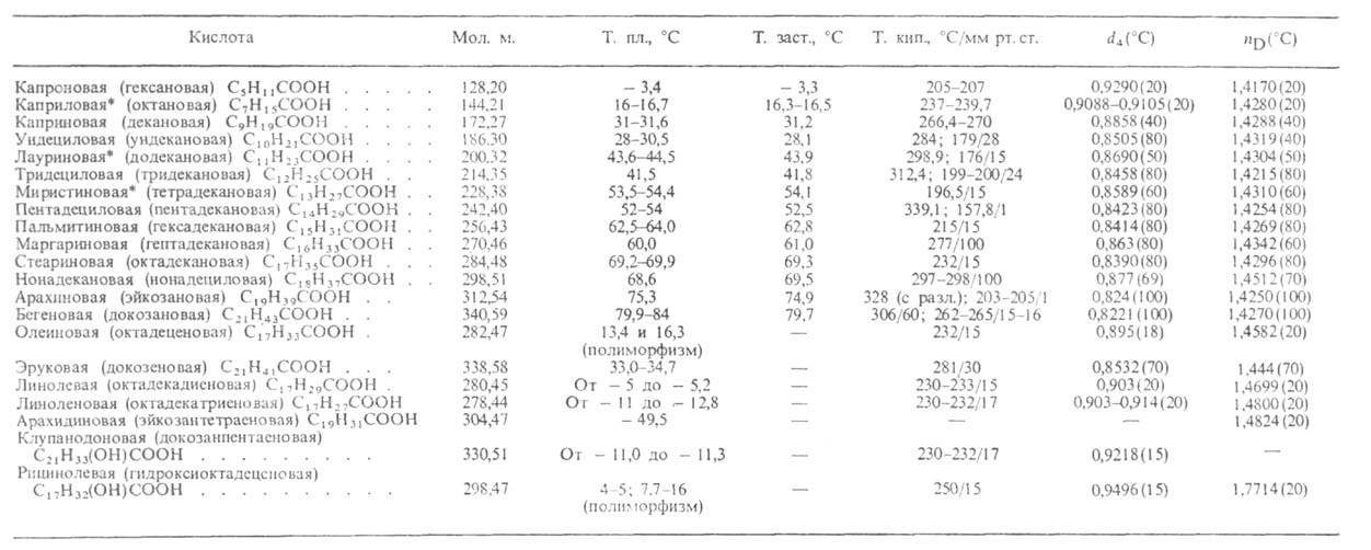 Табл. 1.-СВОЙСТВА НАИБОЛЕЕ РАСПРОСТРАНЕННЫХ ВЫСШИХ ЖИРНЫХ КИСЛОТ