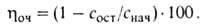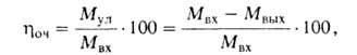 где Мвх, Мул, Мвых-соотв. масса примесей на входе, уловленных в газоочистителе и на выходе из него. Этот показатель можно вычислить также, исходя из содержания примесей в газах до (снач) и после (сост) газоочистного аппарата по ф-ле: