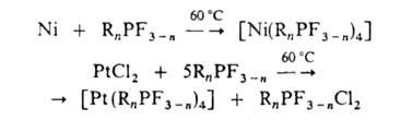 Многие галогенфосфины образуют сравнительно устойчивые комплексы с переходными металлами, напр.: