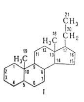 Важнейший прир. гестаген-4-прегнен-3,20-дион, или прогестерон (II; т. пл. 128-130 °С). Его биосинтез осуществляется из холестерина, гл. обр. в надпочечниках, плаценте и желтом теле (см. ур-ние р-ции).