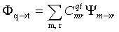 здесь m, r, q и t- индексы, которые могут варьироваться от 1 до N, где N - заданный размер матрицы KB (может варьироваться в широких пределах). Коэффициенты Сqtmr определяются диагонализацией матрицы, построенной из элементов <Ψm→r|H|Ψm’→r’>. Функции Ψm→rявляются однодетерминантными, Фq→t, - многодетерминантными. Однако для большинства электронно-возбужденных состояний основной вклад в Фq→t дает только одна однодетерминантная функция, а другие вносят лишь небольшую поправку, отражающую изменение МО при возбуждении.