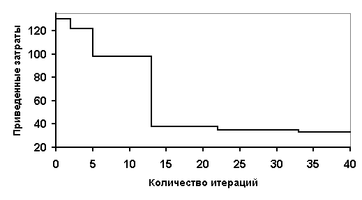 Рис.3.3. Изменение приведенных затрат в процессе синтеза тепловых схем.