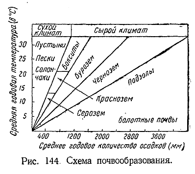 Песок и глина создают минеральную основу всех видов почв. Характер последних зависит главным образом от условий температуры и влажности данной местности (рис. 144).
