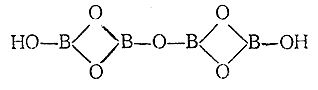 2) Борная кислота (K1 = 6·10–10, K2 = 2·10–13, K3 = 2·10–14) окрашивает пламя в зеленый цвет и несколько летуча с водяным паром, Тетраборной кислоте (K1 = 2·10–4, K2 = 2·10–5) может быть придана структурная формула: