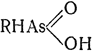 называют арсиновыми кислотами, кислоты типа RAsO(OH)2 — арсоновыми кислотами. Радикал — AsO(OH)2 обозначают префиксом арсоно-. Примеры: