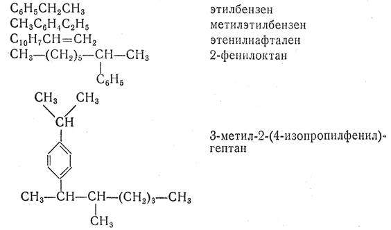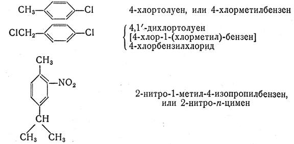 Перед названием циклического углеводорода с боковой цепью, соответствующим (α), рекомендуется во многих случаях применять тривиальные названия простых ароматических углеводородов.