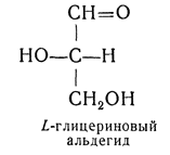 D — обозначение (от слова dexter — правый), указывающее на принадлежность одного из пары зеркальных изомеров (энантиомеров) к ряду соединений с определенной пространственной конфигурацией (D-ряд, или ряд D-глицеринового альдегида). Зеркальные изомеры с противоположной пространственной конфигурацией обозначают символом L (от слова laevus— левый), что также указывает на принадлежность их к стерическому ряду (L-ряд, или ряд L-глицеринового альдегида). Проекционные формулы зеркально-изомерных глицериновых альдегидов: