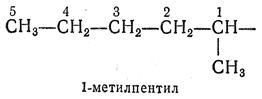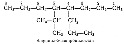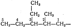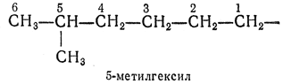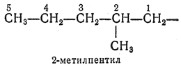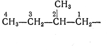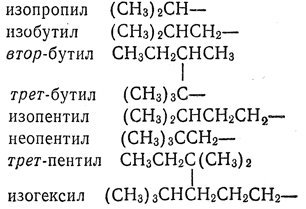 2.25. — Одновалентные разветвленные радикалы алканов называют, добавляя к названию неразветвленного алкила, соответствующего самой длинной цепи (начинающейся от атома углерода со свободной валентностью), префикс, обозначающий боковую цепь, причем начальный атом получает номер 1.