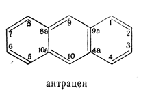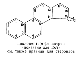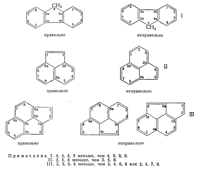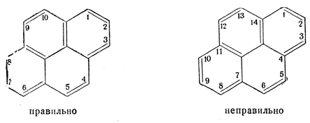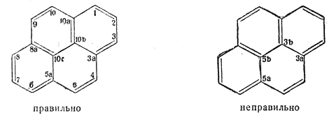22.1. — Для удобства нумерации отдельные кольца полициклических орто-конденсированных или орта- и пери-конденсированных углеводородных систем обычно изображают следующим образом: