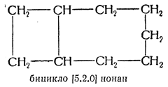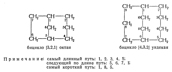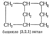 31.1. — Названия насыщенных алициклических углеводородных систем, состоящих только из двух колец, имеющих два или больше общих атомов, производят от названия углеводорода с открытой цепью с тем же общим числом атомов углерода, добавляя префикс бицикло-. Число атомов углерода в каждом из трех мостиков, соединяющих два третичных атома углерода, обозначают в скобках в порядке уменьшения.