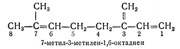 71.1. — Ациклические терпеновые углеводороды (когда речь идет об индивидуальных соединениях) называют в соответствии с правилами, установленными для других ненасыщенных ациклических углеводородов.