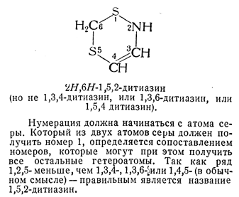 1.52. — Когда одни и те же гетероатомы встречаются в кольце несколько раз, направление нумерации выбирают так, чтобы они получили наиболее низкие номера.