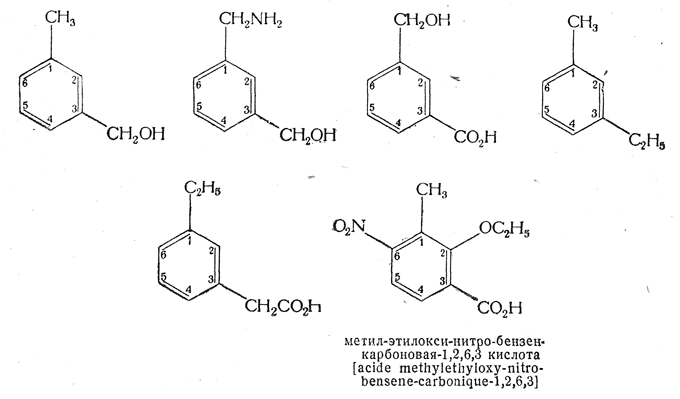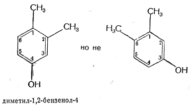 56. Атомы углерода бензольного кольца и примыкающие к ним боковые цепи нумеруются от номера 1 до номера 6.