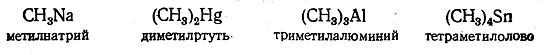 Исследуя состав металлоорганических соединений, Франк-ланд (1853) нашел, что каждый металл дает соединения со строго определенным числом радикалов; это число и представляет собой валентность данного металла. Ниже приведены простейшие металлоорганические соединения одно-, двух-, трех- ичетырехвалентных металлов: