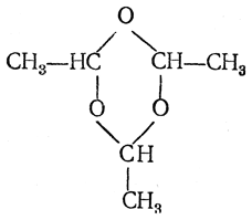 Паральдегид имеет молекулярный вес, отвечающий формуле (С2Н4О)3; строение его выражается формулой