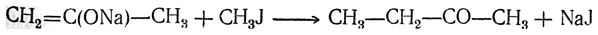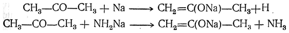 При действии на ацетон металлического натрия или амида натрия получается так называемый ацетон-натрий, представляющий собой натриевый алкоголят изомерного ацетону ненасыщенного изопропенилового спирта: