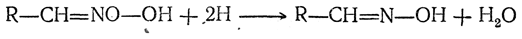 Восстановление жирных нитросоединений значительно менее изучено. Однако и здесь уже известны реакции, при которых получаются продукты неполного восстановления, например альдоксимы и кетоксимы. Вероятно, в этих случаях восстанавливаются изонитросоединения: