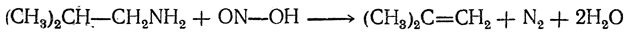 Высшие первичные амины при действии азотистой кислоты в большей или меньшей степени образуют вместо спиртов соответствующие этиленовые углеводороды, например: