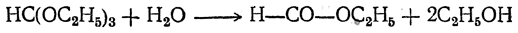 Это — жидкость с приятным запахом, кипящая при 145° С. С водой в присутствии следов минеральной кислоты ортоэфир реагирует, образуя сложный эфир муравьиной кислоты: