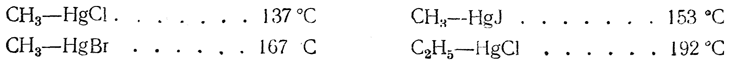 Смешанные ртутноорганические соединения типа [R—Hg]X в некоторой степени напоминают соли. Это кристаллические вещества со сравнительно высокими температурами плавления: