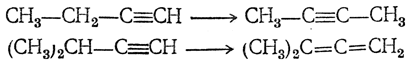 Большой интерес представляют открытые А. Е. Фаворским изомерные превращения ацетиленовых углеводородов, например: