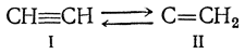 Исследование теплоемкости ацетилена привело Инголд-Ушервуд к заключению, что ацетилен представляет собой равновесную смесь таутомеров — ацетилена (I) и изоацетилена (II) (по Нефу — ацетилидена):