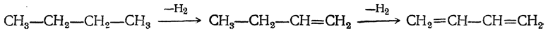 В настоящее время самым эффективным методом получения дивинила является каталитическое дегидрирование природного бутана, а также бутиленов, содержащихся в газах термической переработки нефти. Реакция проводится над различными алюмо-хромовыми катализаторами при 500—650° С. В зависимости от применяемых катализаторов бутан может быть превращен в бутадиен либо сразу, либо в две стадии