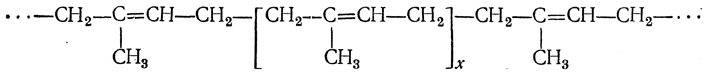 Штаудингер (1924) высказал гипотезу, являющуюся теперь общепринятой, согласно которой натуральный каучук представляет собой ненасыщенный алифатический углеводород, построенный из групп C5H8, соединенных в очень длинную цепь: