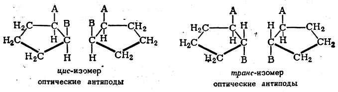 Легко видеть, что такого рода стереоизомеры не относятся друг к другу, как предмет к своему зеркальному изображению. Расстояния между заместителями у транс-изомеров всегда иные, чем у цис-изомеров. Отличия в строении цис- и транс-изомеров больше, чем в строении оптических антиподов. Вследствие этого цис-и транс-изомеры существенно различаются как по физическим, так и по химическим свойствам.