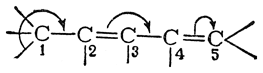 которая выражается, например, в дипольном моменте молекулы пропилена (0,35 D). Смещение π-электронной пары, очевидно, связано с некоторым смещением σ-электронов связей С—Н метильной группы в том же направлении. Обычно это изображают следующим образом: